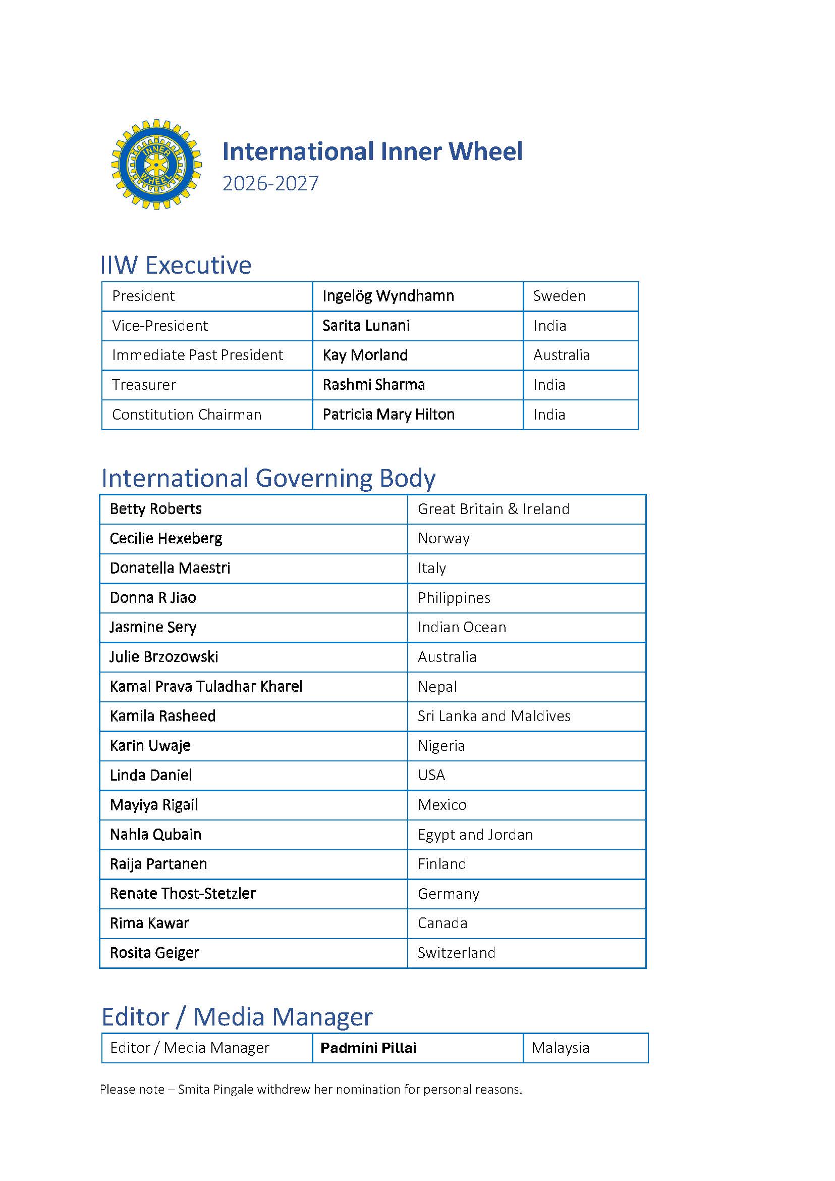 Viel Spaß beim Lesen und Eintauchen in die internationalen Aufgaben und Aktivitäten von Inner Wheel.