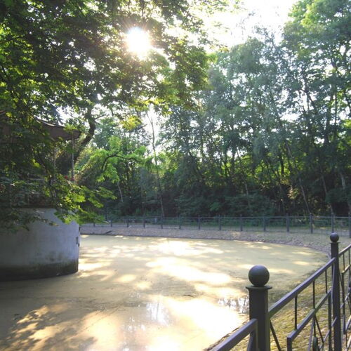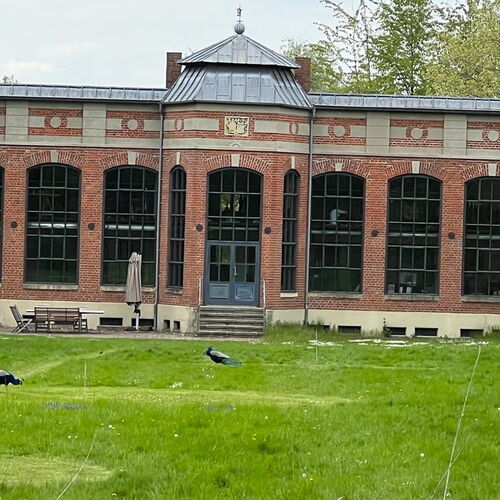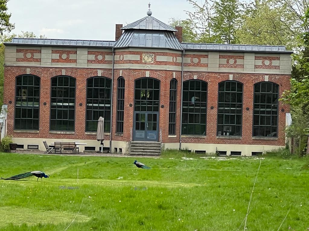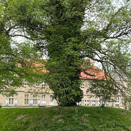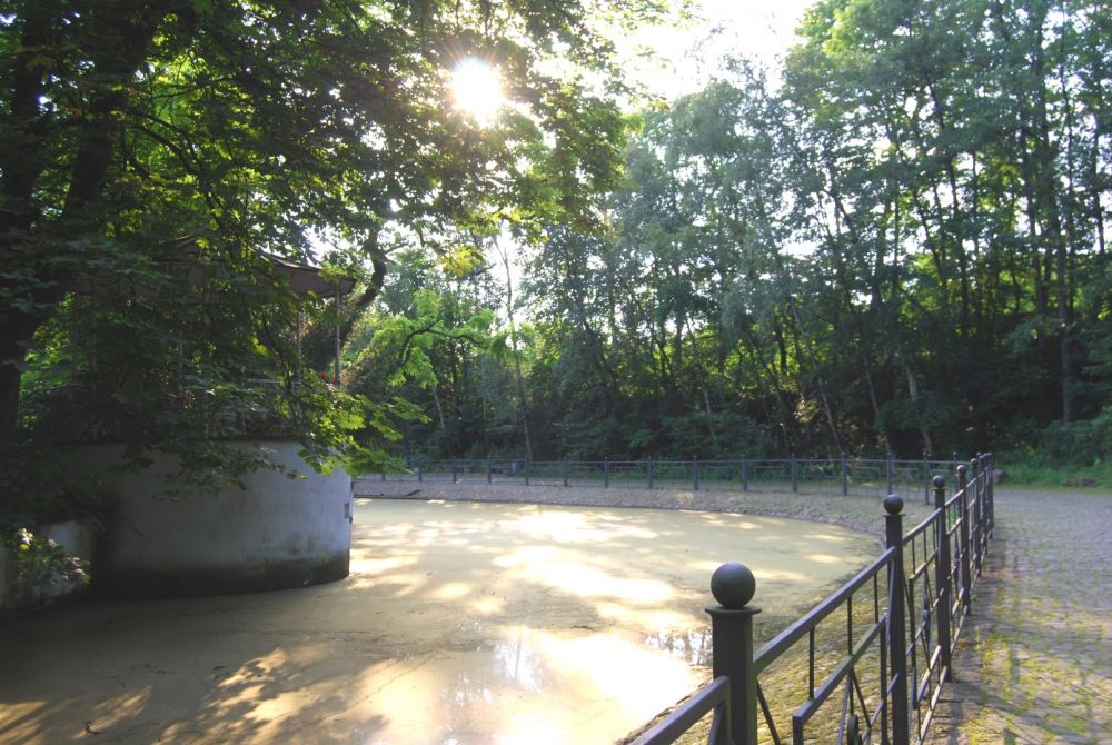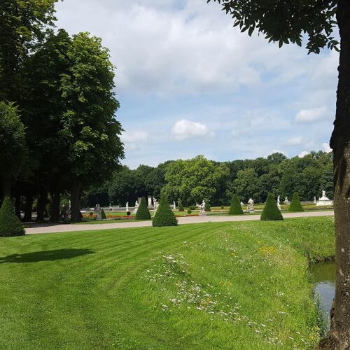 Die natürlichen Landschaftselemente mit Bächen und Wegen im englischen Stil rund um das Schloß werden heute als Golfplatz genutzt.