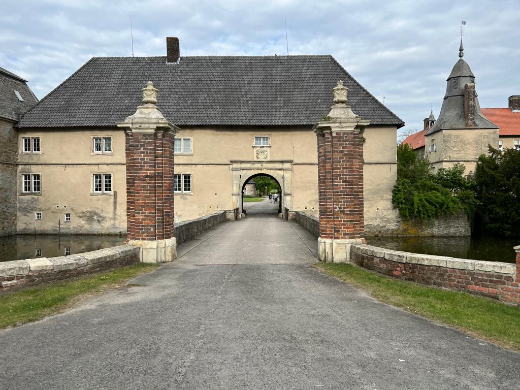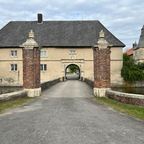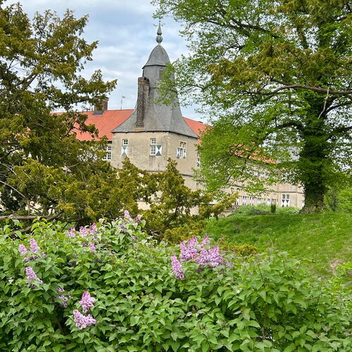 Eine Burganlage an dieser Stelle wird bereits im Jahre 1225 urkundlich erwähnt. Seit 1555 gehört das Schloß den Grafen von Merveldt.